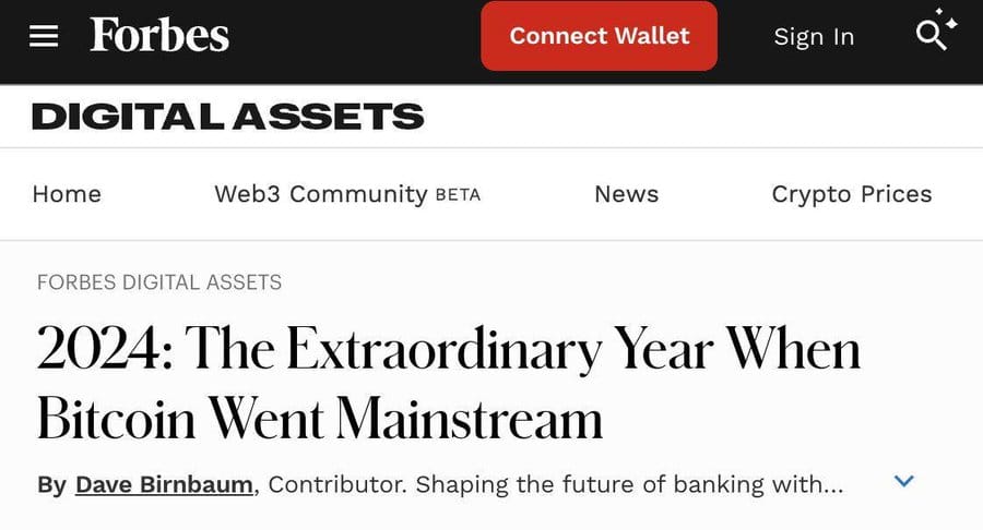 Sixteen years after Bitcoinâs creation, even mainstream outlets like Forbes are calling 2024 the year Bitcoin truly went mainstream.