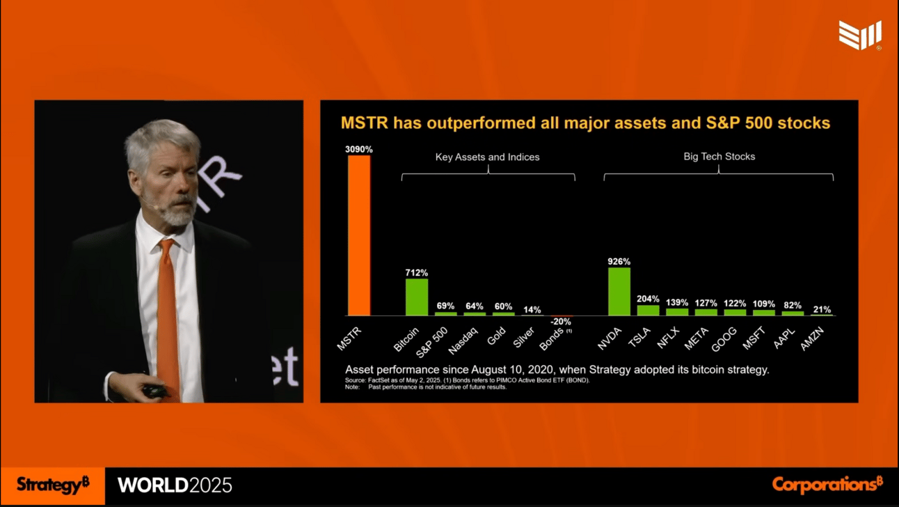 On May 6â7, Strategy hosted its highly anticipated Bitcoin for Corporations event in Miami. Corporate leaders, financial executives, and tech innovators from around the world gathered for what many are calling a master class in financial engineering. Since adopting its Bitcoin reserve strategy, Strategy has outperformed every major asset, including the S&P 500.