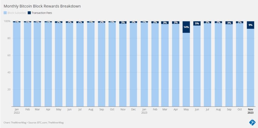 Bitcoin miners have collected approximately 830 BTC in transaction fees this month, totaling $30.7 million, comprising 9% of their monthly rewards—the highest percentage since May.