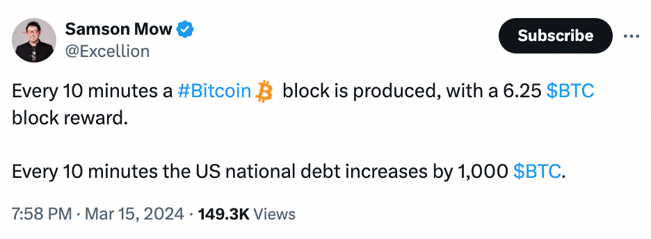 At its core, Bitcoin is very simple - a digital ledger capped at 21 million units, enabling its transformation into a monetary instrument. With Bitcoin, we can now make economic calculations and decisions in what appears to be a fair game for the first time. In contrast, fiat currency, which we've grown accustomed to by decree, lacks a transparent monetary policy that people truly understand.