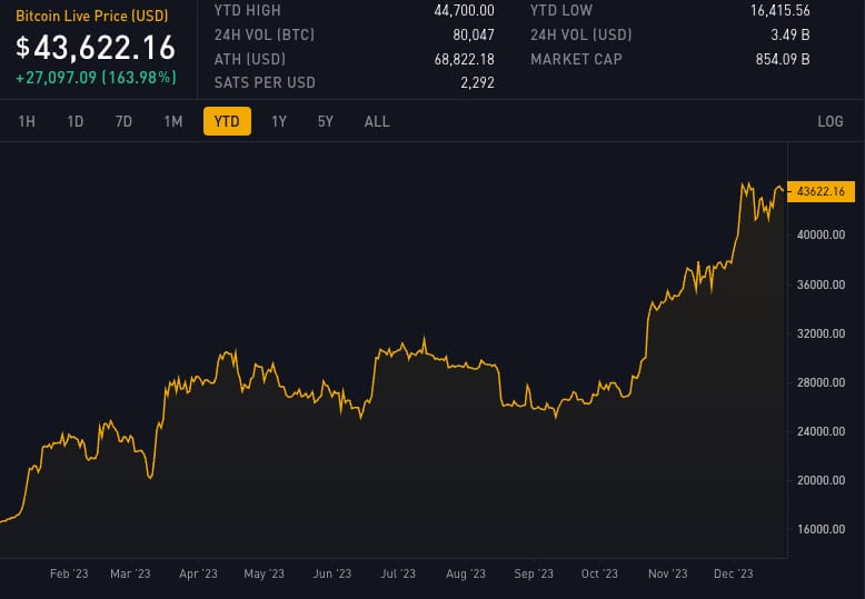 Adoption remains steadfast, showing no signs of slowing down, while mainstream media has begun extensively covering Bitcoin in Q4 of '23. Despite media-induced recession fears, the stock market is nearing new highs. Even as pessimism persists, recent reports from Coinbase and other major institutional asset managers indicate that Bitcoin is likely to outperform despite a sluggish economic forecast.