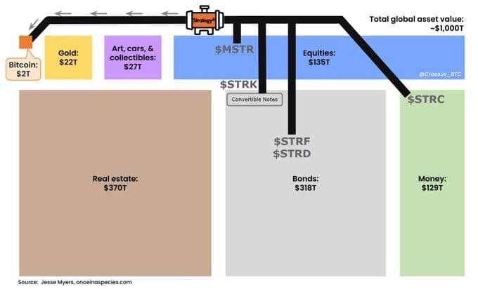 Yet, some analysts see this as a necessary step toward unlocking trillions in global capital through what’s being called the “Bitcoin Milkshake” strategy, allowing institutions to gain exposure to yield-generating Bitcoin instruments.