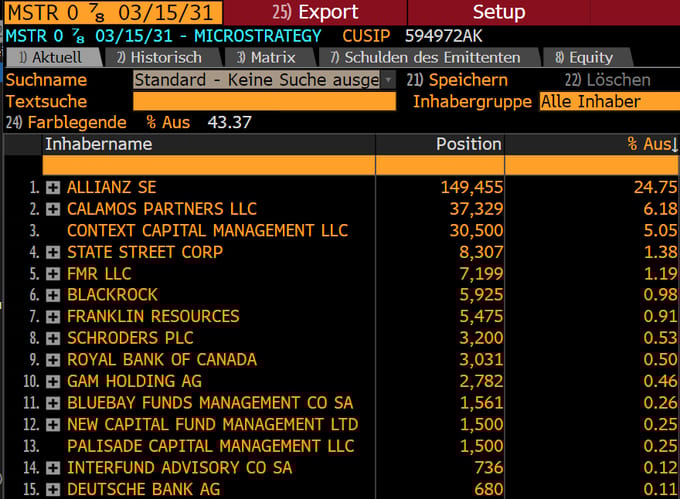 The answer isn’t hidden. This week, Allianz, the German insurance giant, acquired 24.75% of MicroStrategy’s 2031 bond. Even BlackRock made the list.