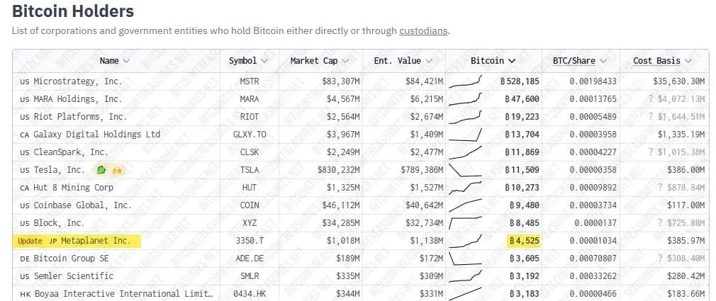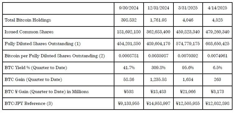 The company now owns 4,525 BTC and is among the top ten public bitcoin-holding firms in the world and the largest in Asia. According to its latest disclosure, the average cost of its bitcoin purchases is around $90,194 per BTC.