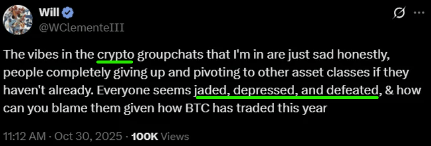 Will Clemente tweeted that his crypto groupchats were "just sad honestly, people completely giving up" (note the word ‘crypto’ and not ‘bitcoin’ 😂).