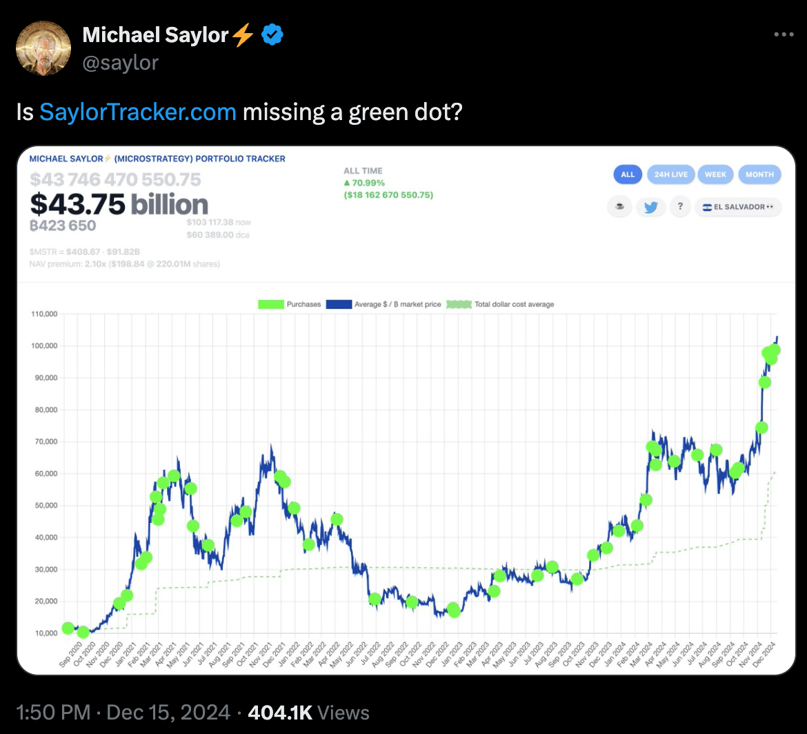 Finally, brace yourself for yet another MicroStrategy Bitcoin purchase announcement—likely to drop just an hour after this newsletter. It’s becoming a pattern: Michael Saylor often reveals new Bitcoin acquisitions for MSTR on Monday, right after sharing this particular chart on Sunday: