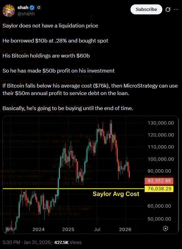 Michael Saylor has pushed back strongly against fears of liquidation. In past comments, he said Strategy would not be forced to sell bitcoin even if prices collapsed. He famously said that even if bitcoin fell to $1, the company would keep buying.