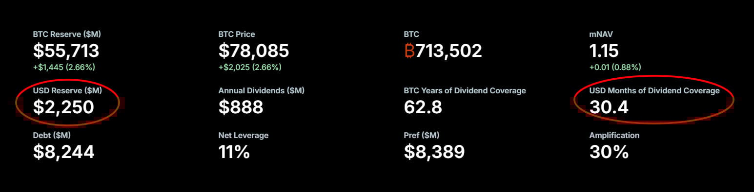 With this much saved in its USD accounts, Strategy says it can easily cover dividends pay until mid 2028 without any changes. This move signals strong cash management and a commitment to investors, even during market weakness.