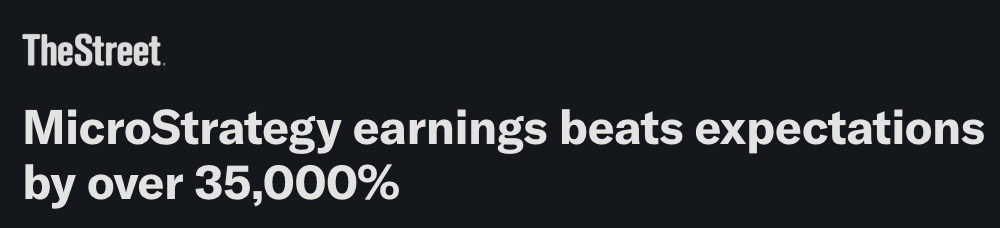 And the kicker? Analysts were still projecting negative EPS. Instead, Strategy shattered expectations, beating estimates by over 35,000%. One of the most dramatic accounting-driven turnarounds in Wall Street history… courtesy of FASB.