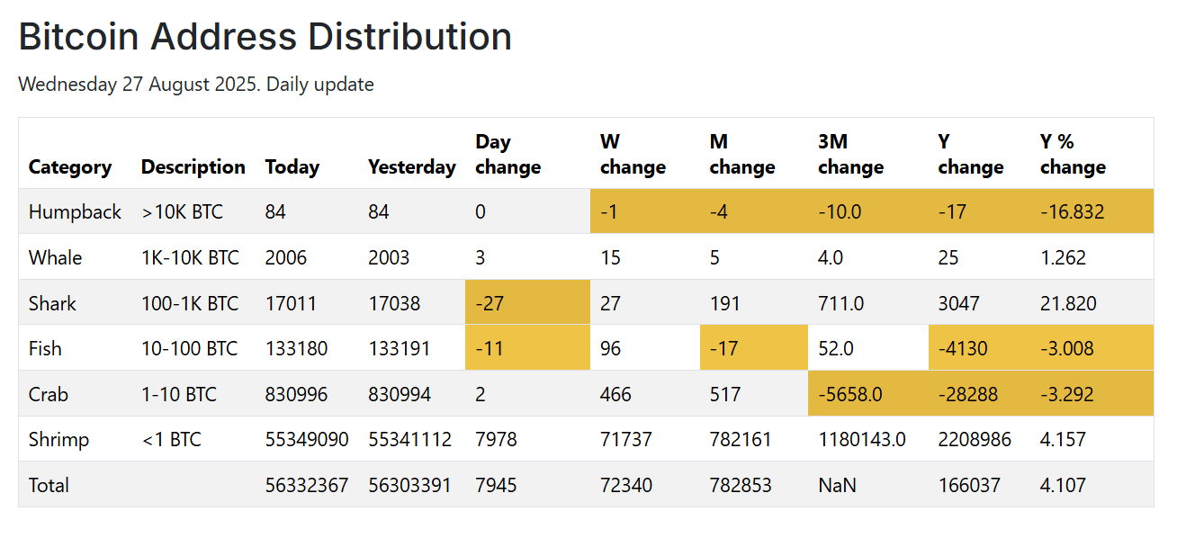 Look at that data: over 55 million Shrimp addresses, 830K Crabs, only 84 Humpbacks. But instead of seeing healthy distribution, we see a hierarchy we need to climb.