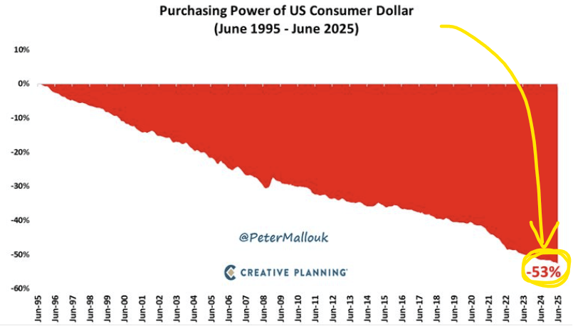 Meanwhile, gold is hitting all-time highs as central banks worldwide are quietly accumulating it. They seem to know what's coming, even if they won't say it publicly. Oh and by the way, earlier this year the Fed also quietly shifted its 2% inflation mandate on the population, moving the goalposts mid-game.